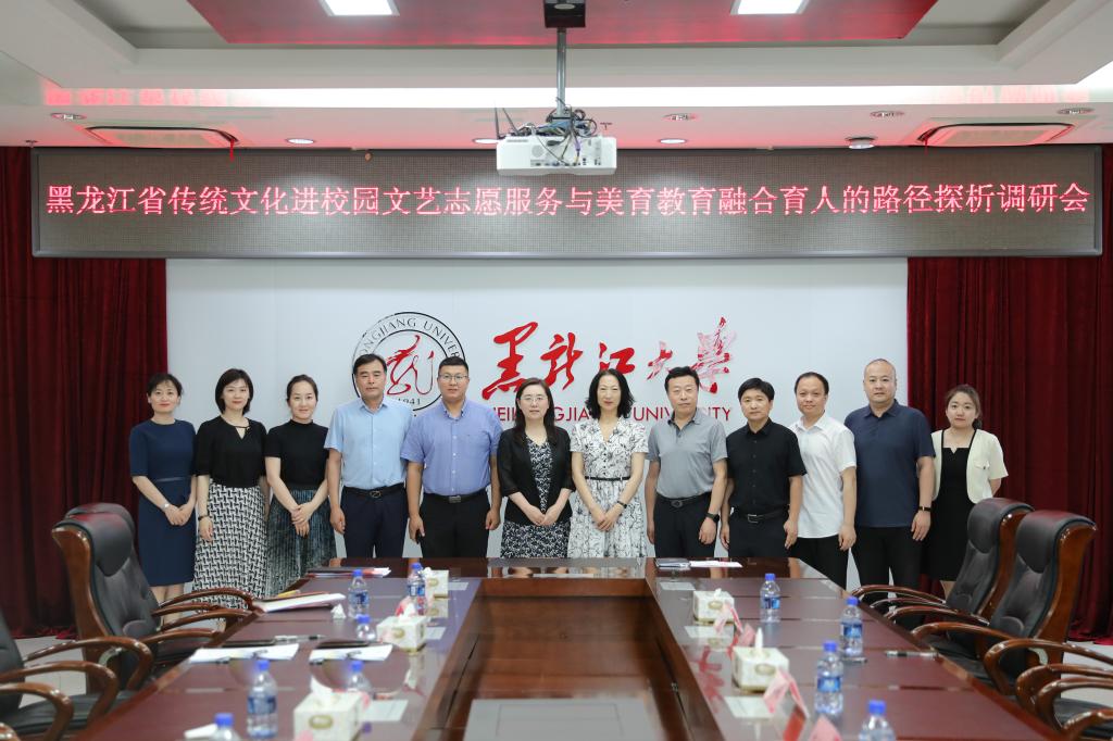 7月4日下午,省文联党组成员、副主席黄锦秋一行来校调研,并在主楼A802会议室召开黑龙江省传统文化进校园文艺志愿服务与美育教育融合育人路径探析调研会。校党委副书记丁宏,党委宣传部、校团委、教务处、艺术学院相关负责人参加会议。