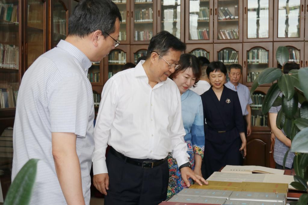 在我校俄语学院俄文资料中心,调研组通过观看我省早期留学人员在哈外专时期的俄文教案、俄文教材与俄文著作等优秀成果,深度了解黑龙江大学早期留学人员立足岗位发挥优势、积极建功立业,服务国家战略方针的独特优势。