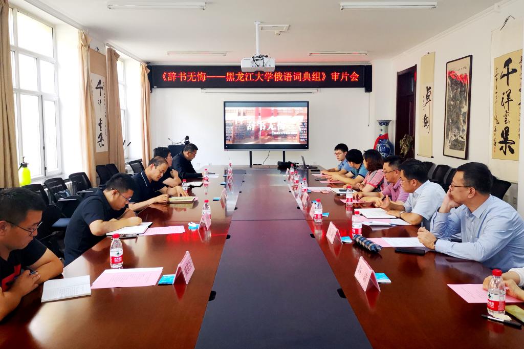 在观看样片后李君明表示,非常感谢省党员教育中心对黑龙江大学办学事业发展的关注和支持。《辞书无悔》选题立意精当,摄制水准很高,充分挖掘出黑龙江大学和黑大俄语学院的丰富史料资源和优秀精神内涵,集中展现了一代又一代黑大俄语人的家国情怀和工匠精神,该片通过省级平台面向全国推送展播,是黑龙江大学对外宣传的一次难得契机。下一步,围绕会上提出的传承延安精神、弘扬龙江优秀精神、深化中俄友好合作等作品完善意见,学校相关部门要积极配合,全力保障,力争打造时代精品,为全省党员教育工作提供优质内容。会上,俄语学院党委书记黄东晶、俄语学院院长孙超、俄罗斯语言文学与文化研究中心主任叶其松、俄语学院教授赵洁、俄罗斯语言文学与文化研究中心研究员张春新等先后发言,对该片的精心创作表示感谢,并在专业方面提出部分修改意见。