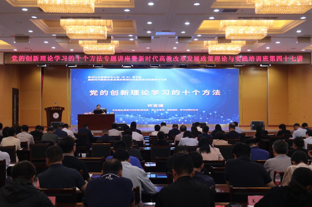 讲座上,许宝健教授以《党的创新理论学习的十个方法》主题,主要围绕“以行促学”“以读促学”“以问促学”“以议促学”“以思促学”“以讲促学”“以写促学”“以访促学”“以考促学”“以研促学”共十个方面阐释了党的创新理论的学习方法。