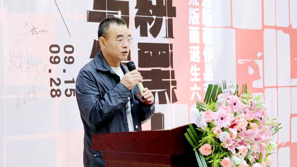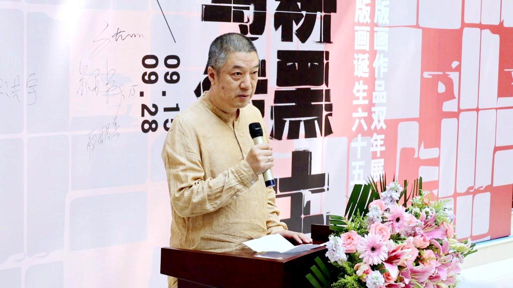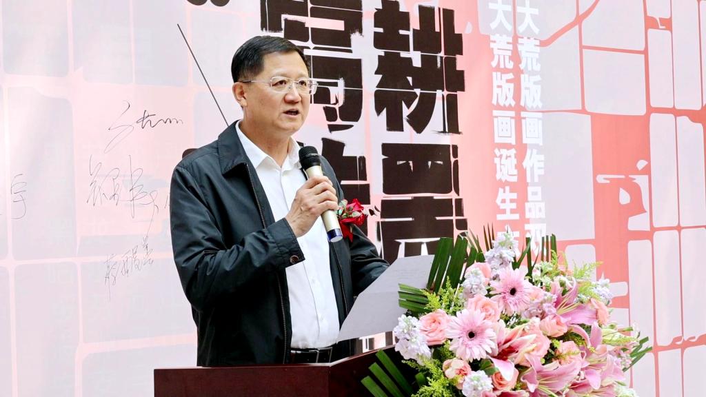 省文联一级巡视员张正明宣布“北大荒版画诞生六十五周年·深耕黑土·续写传奇——首届北大荒版画作品双年展”正式开幕。
