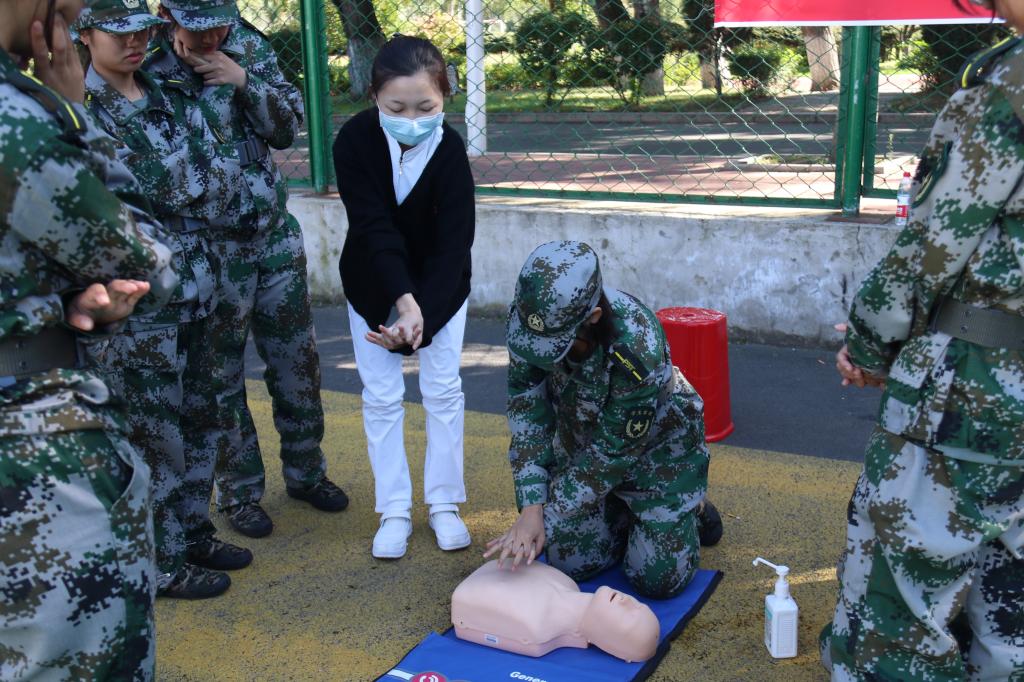 在培训现场,医护人员用通俗易懂的语言,详细地讲解了心肺复苏的紧急处理方法和急救措施。医护人员一对一、手把手指导,每位学生亲自操作演练所学知识,规范按压位置与手法,严谨操作角度、力度和强度,一边交流,一边改正,认真练习动作要领,保证了每位学生都能掌握心肺复苏技能要领。