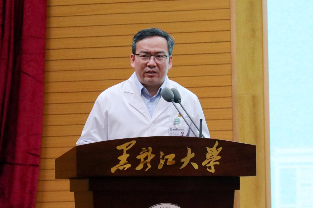 仪式上,贾海波介绍了“心肺复苏进高校”项目建设情况。他指出,“心肺复苏进高校”作为哈尔滨医科大学附属第二医院的一项公益项目,旨在大学生中普及心肺复苏教育,帮助大学生树立生命健康意识,提高自救和互救技能。希望通过该项目推动创建平安校园,提升全社会公众急救能力。