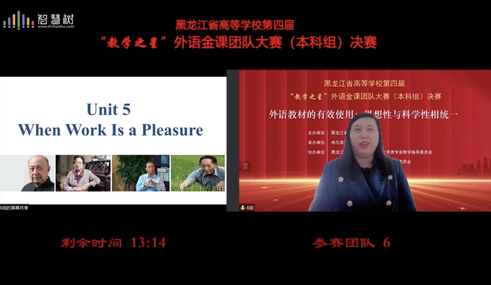 胥扬和宋月霜两位教师代表参赛团队充分发挥教师的主导作用,以教材为依托,以课文内容为主题,以互动式阅读为手段,通过多模态形式讲解,引导学生掌握写作知识和技巧,授课过程兼顾语言知识和课程思政内容并重,既培养学生语言应用能力和高端思维能力,又通过价值引领实现学生知识与情感的建构,树立正确价值观和学习观,力争做积极的学习者。团队成员默契协作,充分体现黑龙江大学应用外语学院教师扎实的专业积累、过硬的教学功底,彰显当代外语教师的格局与担当、智慧与风采。(应用外语学院供稿)