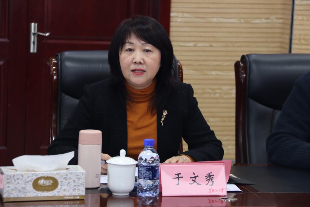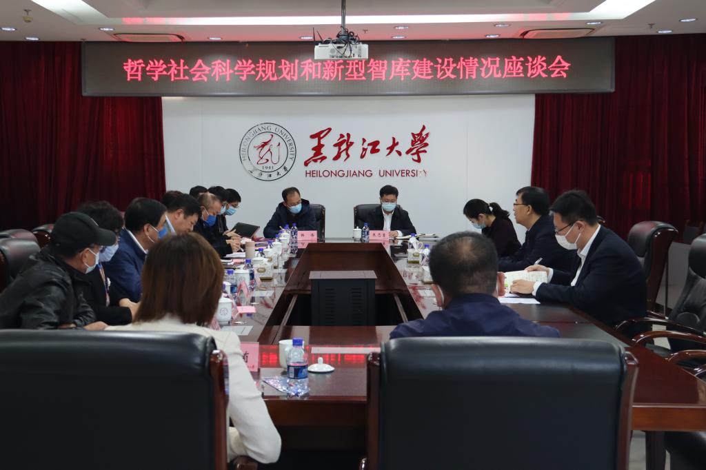 郝文斌在认真听取汇报和交流发言后,对学校的相关工作予以肯定。他指出,贯彻落实《国家“十四五”时期哲学社会科学发展规划》和《黑龙江省“十四五”时期哲学社会科学发展规划》,必须坚持党的全面领导。省哲学社会科学工作的目标是打造哲学社会科学高地,省哲学社会科学工作办公室的理念是像对待家人一样为广大哲学社会科学工作者服好务,要做到真情、真诚、真知、真为。对于省哲学社会科学工作的构想,他谈及五个方面。一是立足大学问,学习大先生的大情怀,不计功利;二是瞄准大格局,锚定党和国家重大战略需求,为中华民族伟大复兴战略全局而奋斗;三是把握大趋势,要用新思想、新理念、新文科等新观念为传统哲学社会科学注入新活力,赋予新的时代特征、新的实践要求和新的传播动力;四是搭建大平台,真正发挥平台的作用, 建设好省级人文社科基地和省级新型智库,推动基础研究和应用对策研究协同发展;五是构建大体系,把构建自主知识体系作为学科体系、学术体系、话语体系的核心和基础。此外,要牢牢掌握哲学社会科学话语权,讲好中国故事。郝文斌强调,作为黑龙江人民的子弟校,黑龙江大学要继续发挥好示范作用,在学科资源整合、学术组织方式、话语体系、国际传播四个方面做好示范,推进我省哲学社会科学和新型智库建设发展。此外,他还对学校马克思主义学院建设、人才梯队搭建等方面提出指导意见。