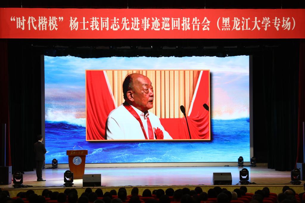11月28日下午,“时代楷模”杨士莪同志先进事迹巡回报告会(黑龙江大学专场)在音乐厅举行。省委宣传部副部长、省精神文明办副主任尚铁权,校党委书记迟宝旭,党委常委、统战部部长王培军,党委常委、宣传部部长杨其滨,党委常委、组织部部长王刚,学校二级党组织负责人、各职能部处负责人、各学院科研教师和学生代表1000余人参加报告会,报告会通过龙江高校网络思政中心视频号进行同步直播。