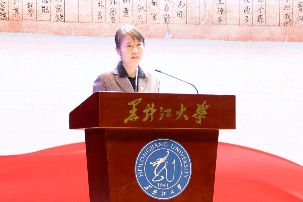 随着军号声响起,报告会正式开始。哈尔滨工程大学党委副书记张石梅以《许党报国 奉献终身》为题,讲述了杨士莪院士投身国家事业、扎根水声领域的光辉一生。作为水声学科的奠基人、水声事业的开拓者,他带领中国水声学科实现了从无到有、从弱到强的跨越,用实际行动诠释了对党的忠诚、对祖国的热爱以及对事业的执着。
