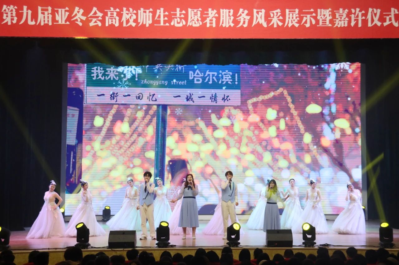 活动在哈尔滨音乐学院学生表演的开场鼓《鼓舞龙腾》中拉开帷幕。来自25所高校的师生志愿者代表以音诗画的形式讲述了难忘的“亚冬记忆”,重温了亚冬会期间那些青春和热血交织的瞬间,畅谈了志愿服务工作中的收获和成长,发出了龙江青年学子爱国、奉献、奋斗、担当的青春誓言,带领现场观众上了一堂新时代立德树人鲜活思政大课。来自我校、哈尔滨师范大学、哈尔滨体育学院、黑龙江艺术职业学院的师生演绎了《尔滨的雪》《冰灯启梦》《屹冰傲雪》等歌舞,将冰雪文化与青春活力完美融合。亚冬会执委会为高校颁发了感谢信。青年学生以集体倡议的形式,向全省高校志愿者发出“冰雪答卷,青春誓言”的倡议。活动在《点亮亚冬》优美的旋律中落下帷幕。