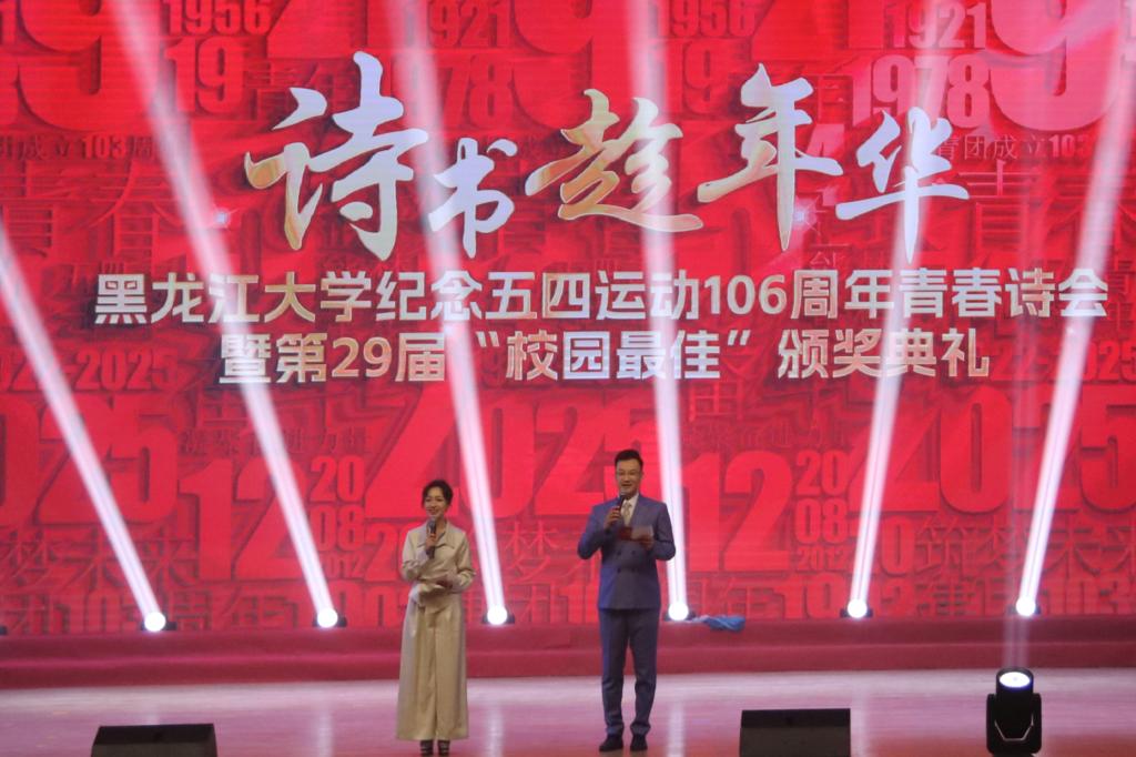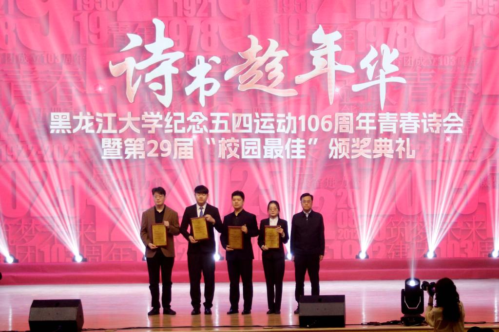 为弘扬五四精神,集中展示新时代黑大学子的精神风貌和价值追求。4月28日下午,我校在音乐厅举行“诗书趁年华”纪念五四运动106周年青春诗会暨第29届“校园最佳”颁奖典礼。校领导、相关职能部门负责人、主管学生工作领导、专职团干部、学生代表及受表彰学生参加活动。