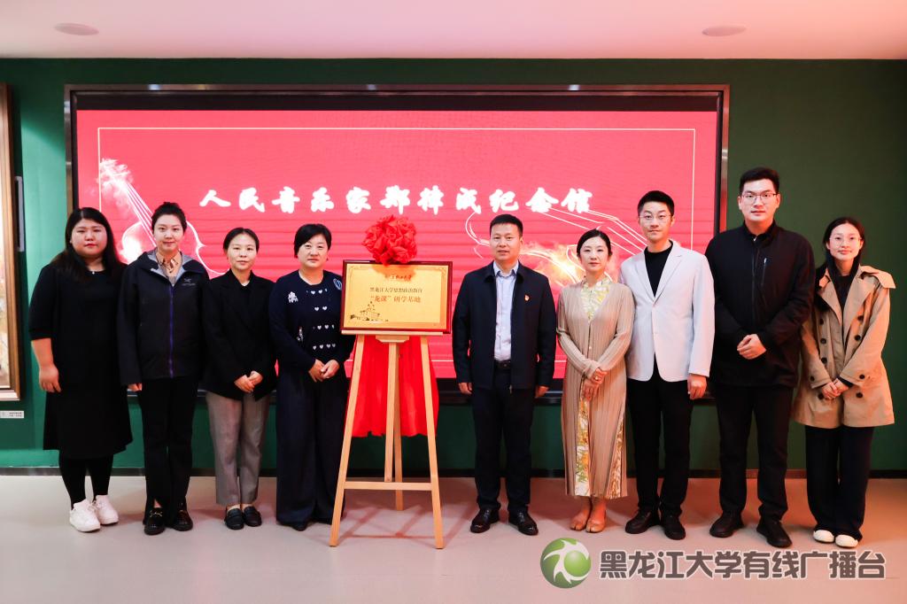 校团委书记李可宝,哈尔滨市朝鲜民族艺术馆、人民音乐家郑律成纪念馆馆长李春实共同为黑龙江大学思政教育“龙课”研学基地揭牌。双方以本次揭牌仪式为契机,依托纪念馆深厚的红色文化与艺术资源,推动构建校馆协同育人新范式,将思政教育从校园教室拓展至社会实践场域,使思政教育更加可感可触、入脑入心,为提升我校思政工作的感染力与实效性注入了强劲动能。