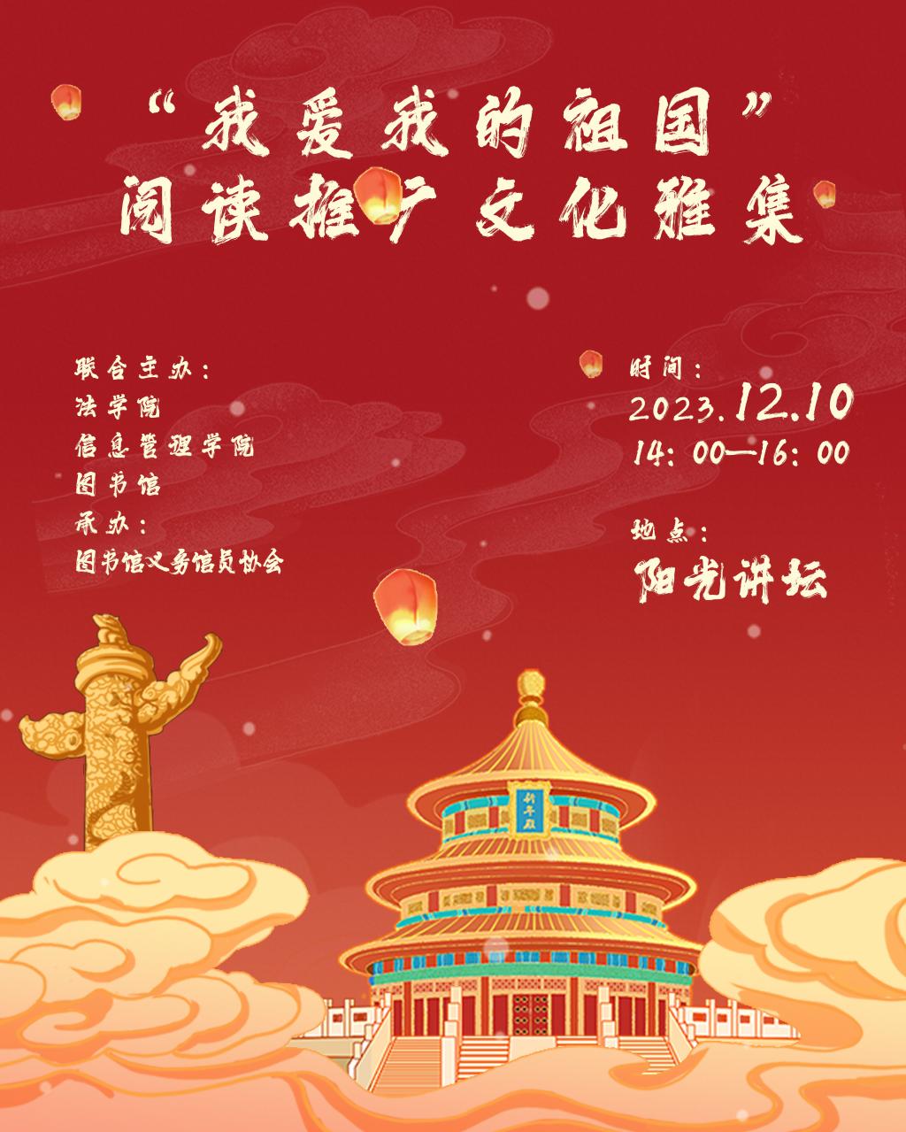 《中华人民共和国爱国主义教育法》将在2024年1月1日正式施行,为了培育和增进我校大学生对中华民族和伟大祖国的情感,传承和弘扬爱国主义精神,坚定爱国主义信念,在党委宣传部的大力支持下,由图书馆发起,联合法学院、信息管理学院共同举办“我爱我的祖国”阅读推广文化雅集活动,本次活动通过好书荐读、京歌京剧等多种喜闻乐见形式,共同抒发黑大学子的家国情怀。