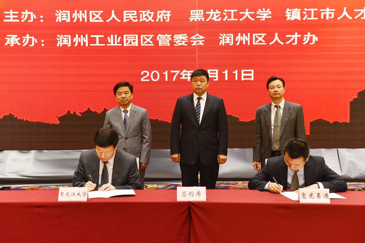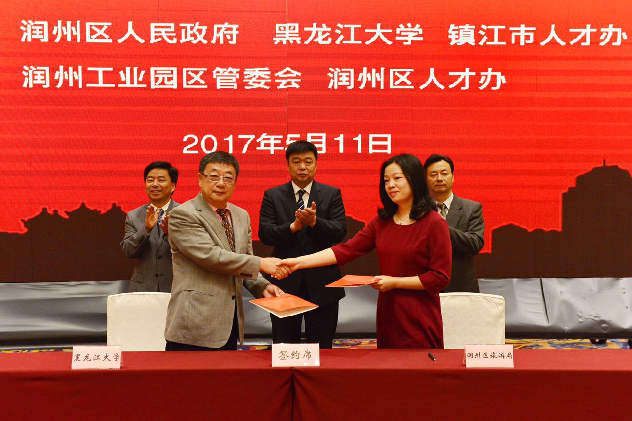 揭牌仪式后,黑龙江大学研究生学院、中俄联合研究生学院与惠龙易通签订研究生工作站合作协议;黑龙江大学国际文化教育学院与润州区旅游局签订“外国留学生感知中国文化体验活动”推广平台框架协议。