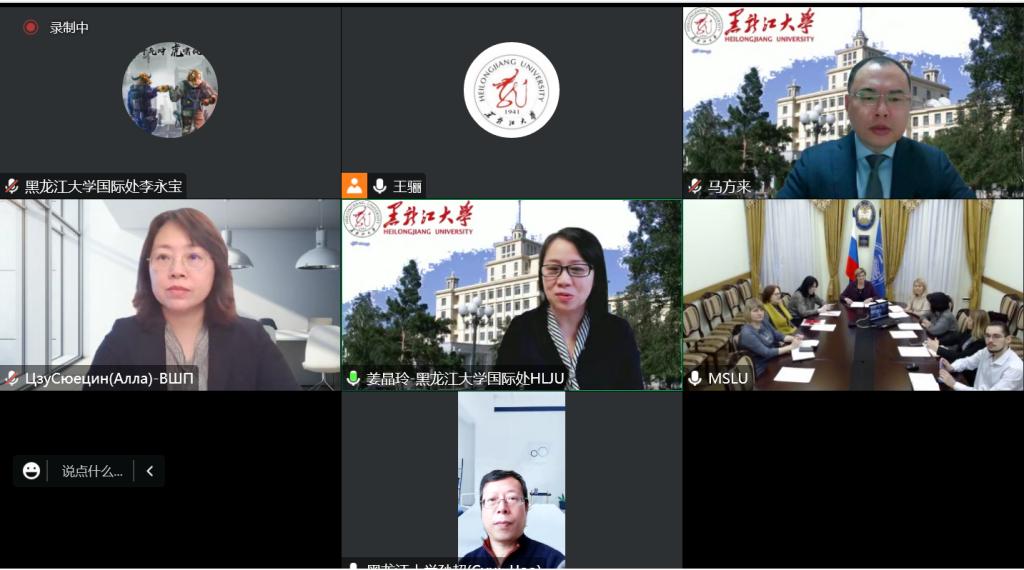 12月16日,我校与俄罗斯莫斯科国立语言大学(以下简称“莫语大”)以线上方式举行视频会议,就共同发起成立中俄语言教育大学联盟和开展联合人才培养项目进行讨论。我校国际文化教育学院(国际合作与交流处)党总支书记姜晶玲、副处长马方来,俄语学院院长孙超,高翻学院副院长祖雪晴,莫语大国际合作与国际化处处长绍金娜、翻译学院院长波霍尔科娃、外语学院院长格鲁宾娜及两校相关人员出席会议。