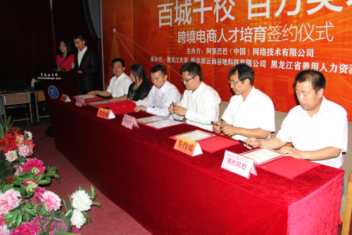 6月26日下午,“百城千校,百万英才”跨境电子商务人才培育项目黑龙江省签约仪式在我校举行。此次仪式由阿里巴巴(中国)网络科技有限公司主办,商务厅、教育厅领导以及来自企业、第三方机构和省内三十余所高校代表参加。