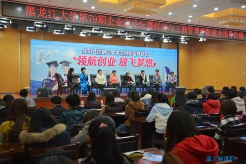 10月22日下午,“援助女大学生就业创业行动——成功女性进校园”活动在我校主楼一楼报告厅举行。本次活动由省妇联、省人社厅、省教育厅联合举办。同时,该活动也是“黑龙江大学第79期企业家论坛暨经济与工商管理学院就业指导讲座”,由学校创业教育学院和经济与工商管理学院共同承办。参加本次访谈的嘉宾均为各行业成功的女性企业家,活动旨在通过成功女性的创业故事,帮助大学生转变创业观念,激发创业热情。省妇联副主席张长虹、省人社厅创业处副处长李显武、黑龙江大学创业教育学院院长吴金秋、省教育厅就业指导中心培训部部长刘鸿宇等莅临活动现场,本次活动由龙广高校台主持人刘夏主持。
