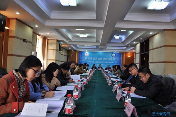 10月11-12日,由我校历史文化旅游学院和中国社科院《世界历史》编辑部主办、黑龙江省社科联《学术交流》编辑部协办的“第三届世界史研究前沿论坛”学术研讨活动在我校举行。来自中国社会科学院、北京大学、南开大学、外交学院、浙江大学、吉林大学、东北师大、华东师大、上海师大、福建师大以及省内的共20多家高等院校和科研院所的50余名专家学者与会。