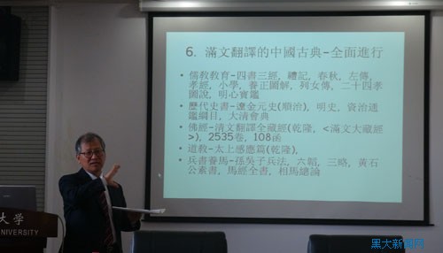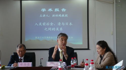 会后,崔溶澈教授、洪性鸠教授分别以“中国古典在韩文及满文的翻译比较”、“入关前后金、清与日本之间的关系”为题做了精彩的学术报告。崔溶澈教授主要探讨论述了朝鲜王朝世宗大王创制朝鲜文之后,朝廷对一些中国古典进行翻译出版,考察朝鲜文和满文的创制目的和方法、朝廷进行的翻译政策以及翻译时期、翻译方式等;洪性鸠教授主要探讨论述了明朝、清朝与日本之间关系的区别及其原因,带给学者新的启示与思考。(文图由满族语言文化研究中心提供)