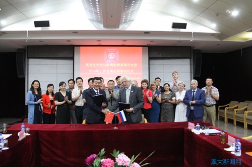 7月7日至11日,新西伯利亚国立大学自然科学系主任、黑龙江大学中俄学院俄方院长列兹尼科夫V. A.教授率新西伯利亚国立大学化学、生物、物理、数学、经济、法律专业负责人一行8人应邀访问我校,双方就中俄学院本科人才培养方案的执行与修订、联合研究生培养和两校多领域合作等问题进行了认真磋商,并签署2014年工作会谈纪要。我校党委书记刘德权、副校长何颖等出席会谈或参加相关活动。