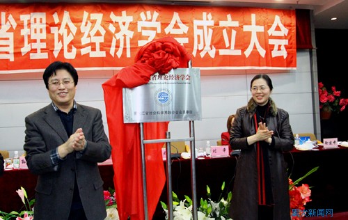 随后,刘幸副主席,丁立群副校长,孙俭太副局长和焦方义教授共同揭牌,黑龙江省理论经济学会正式成立。