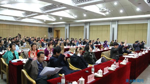 大会第二阶段由哈尔滨理工大学管理学院院长、博士生导师修国义教授主持。在哈尔滨工程大学经济管理学院博士生导师徐建中教授解读了《黑龙江省理论经济学会章程(草案)》后,现场选举产生了学会理事会及领导机构。