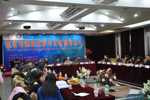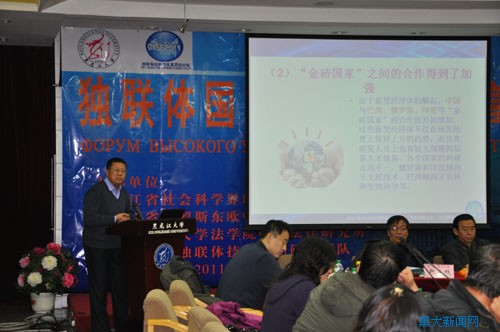 由黑龙江省社会科学界联合会、黑龙江省俄罗斯东欧中亚学会、哈尔滨工业大学法学院中亚法律研究所、黑龙江大学高层次人才支持计划—黑龙江大学独联体技术创新研究团队主办的“独联体国家创新与发展高级论坛”于2011年12月18日在黑龙江大学外事处多功能厅隆重举行。