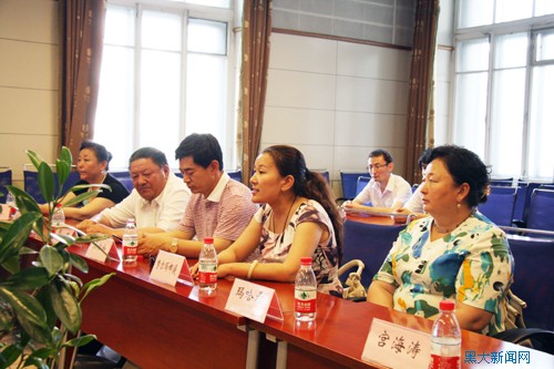 其间,蒋鲲处长向努尔马娜提团长一行介绍了学员在我校学习、生活的具体情况,并专门就课程安排、学时设置、日常管理和活动等方面做出了详细说明。蒋鲲处长委托努尔马娜提团长向清河人民转达黑大师生的问候,他说,黑龙江大学将专心致力于阿勒泰学员的成长成才,努力为其提供最优质的教育教学资源,圆满完成上级领导下达的援疆培训任务。
