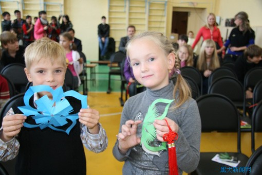 纳霍德卡第十一中学的孩子们动手学剪纸