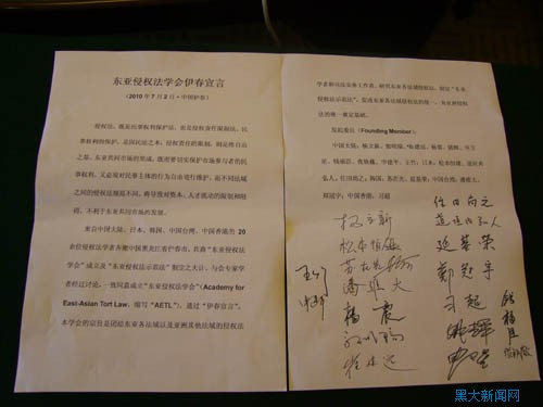 与会代表签署《东亚侵权法学会伊春宣言》
