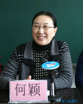 我校副校长何颖与南岗区副区长陆桂英(右)共同为教师专业发展学校揭牌 摄影:李岩松