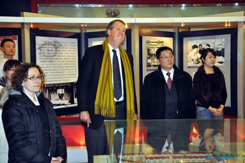 魏思然先生在大冬会和往届冰雪节期间都曾来过哈尔滨,因此在“美丽的冰城有很多难忘回忆”。此次参观黑龙江大学校史馆,同样让这位喜爱哈尔滨的领事先生印象深刻,他与随行人员不时驻足欣赏,耐心听取讲解,并高度评价了校史馆馆藏文物的历史价值。(责任编辑:王蕾 摄影:文盛 魏卓然)