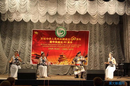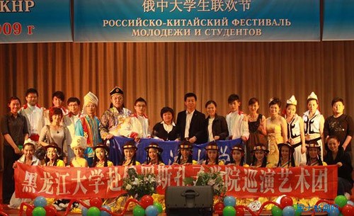 黑龙江大学赴俄罗斯孔子学院巡演艺术团是由校团委在校学生艺术团的基础上组建的,并得到了艺术学院的大力支持。自2009年9月29日至10月15日,艺术团的30名师生由校团委副书记孙美晖老师、外事处李永新老师带队,先后前往俄罗斯符拉迪沃斯拖克、克拉斯诺亚尔斯克市、伊尔库斯克市、哈巴罗夫斯克市和布拉戈维申斯克市等5个城市,分别在远东国立大学孔子学院、伊尔库斯克国立大学孔子学院、布拉戈维申斯克师范大学孔子学院和西伯利亚联邦大学、远东国立人文大学等进行了6场演出,先后有3000多人现场观看了艺术团的表演,受到了当地观众的广泛欢迎。许多俄罗斯人由衷的赞叹中国大学生的艺术水平,更有一些久居国外的华人看完演出后热泪盈眶,久久不肯离去。