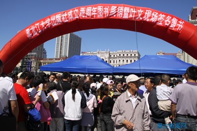 8月29日,“黑龙江大学出版社成立两周年图书展销暨叶文现场签字售书活动”在哈尔滨索菲亚教堂广场举行。