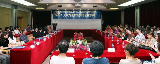 据了解,为促进汉语在美国的推广及增加文化间的交流,美国国务院开展了夏季语言研修项目。从2008年开始,黑龙江大学与美国汉德里克斯学院合作,开展了夏季汉语研修项目,每年选送40名美国优秀大学生来黑龙江大学进行为期两个月的汉语研修。 (摄影:张满)