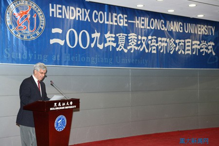 在开学式上,张晓光院长首先代表学校对远道而来的Jay McDaniel博士及美国的同学们表示热烈的欢迎。他简要介绍了黑龙江大学的历史概况和现状,以及学校在对外交流方面所取得的成绩。他预祝同学们通过此次研修不仅取得学习上的飞跃,更增进对中国的了解,促进两国间的交流合作。