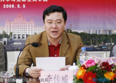 李传威在致辞中代表省教育厅和省学位办对本次论坛的胜利召开表示祝贺。他说,“创新是一个民族发展进步的力量源泉,是研究生教育追求的根本目标”,举办博士生学术论坛,是实施研究生教育创新工作的重要内容,目的是为了营造博士生学术交流的氛围,为博士生提供一个高起点、大范围、多领域的学术交流平台,促进优秀知识成果的交流,拓宽博士生的学术视野,激发博士生的学术热情,启发博士生的科学思维,增强博士生的使命感和责任感,促进了博士生培养质量的不断提高。最后,李传威副主任表示相信本次论坛依托黑龙江大学哲学和马克思主义学科的肥沃土壤,一定会取得圆满成功。
