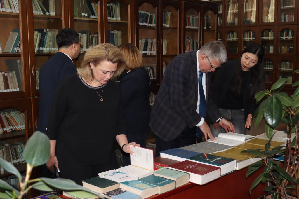 会谈结束后,代表团一行参观了我校俄语学科成果展和俄语学院资料中心。