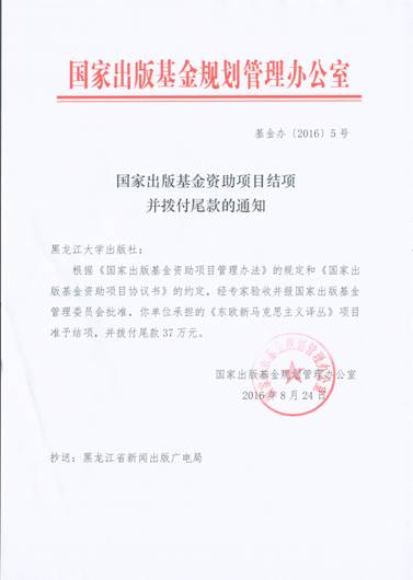 近日,由国家出版基金规划管理办公室组织的国家出版基金资助项目验收专家组,对黑龙江大学出版社承担的2010年国家出版基金资助项目《东欧新马克思主义译丛》进行了结项验收。出版社相关负责人分别从项目前期策划、项目资金使用及进度、具体工作推进情况以及项目运作的具体保障措施等几个方面向验收专家组进行了汇报。