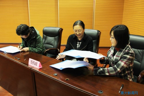 何颖校长与入选教师代表、培养单位负责人共同签订了《黑龙江大学学科青年学术骨干百人支持计划聘期合同》。