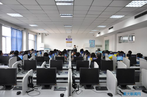 11月7日进入黑龙江省普通高校本科大学英语课程教学质量评估第二天,上午8点专家组一行5人分至3号楼、4号楼、实验楼、汇文楼多媒体语言实验室随机听取10个班次第一节、第二节的大学英语课程。