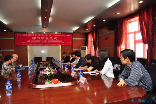 闫鹏飞副校长代表我校向YU.N布勃诺夫院士颁发了特聘教授聘书。