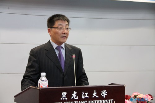 在受聘仪式上,张政文校长高度评价了日本福冈大学作为西日本最大规模的综合性大学在日本高等教育学府中所占有的重要地位,对卫藤卓也教授的学术成就表示极大地肯定。他说,福冈大学创立于1934年,现已拥有9个学院31个学科,是日本的著名大学;校长卫藤卓也教授融贯中西、学识渊博,是日本物流学方面的知名专家。值此黑龙江大学迎来70周年校庆之际,卫藤卓也教授一行来我校访问并被聘请为我校名誉教授,一定会进一步加强两校之间的合作与交流,促进两校之间的友谊与发展。