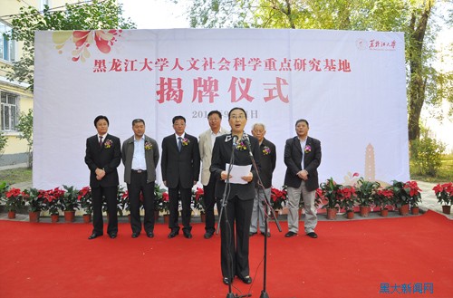 9月21日上午,黑龙江大学人文社会科学重点研究基地揭牌仪式隆重举行。黑龙江省委宣传部副部长张翔、我校校长张政文共同为基地揭牌。该基地的建立,是我校科研创新体制改革的一项标志性成果,对于未来引领和带动我校哲学社科实业实现跨越式发展将起到积极的支撑作用。揭牌仪式由我校副校长何颖主持。我校副校长丁立群,省委宣传部理论处副处长、省社科规划办主任张立民,省教育厅科技处副处长李柏峰等领导同志出席了揭牌仪式。